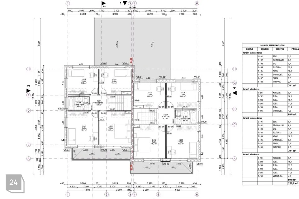 - vannituba – 8,1 m² koos saunaga – 3,2 m²;