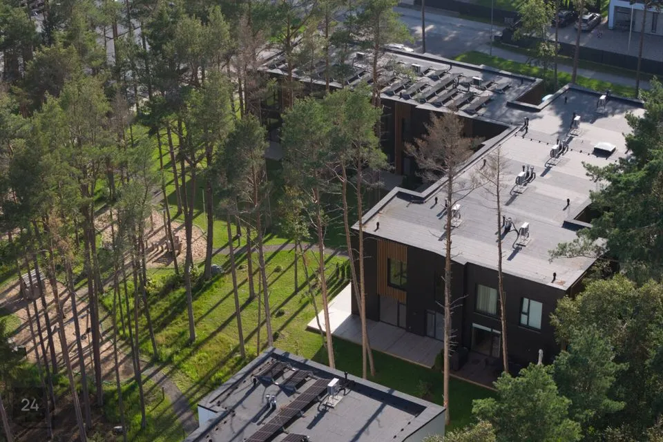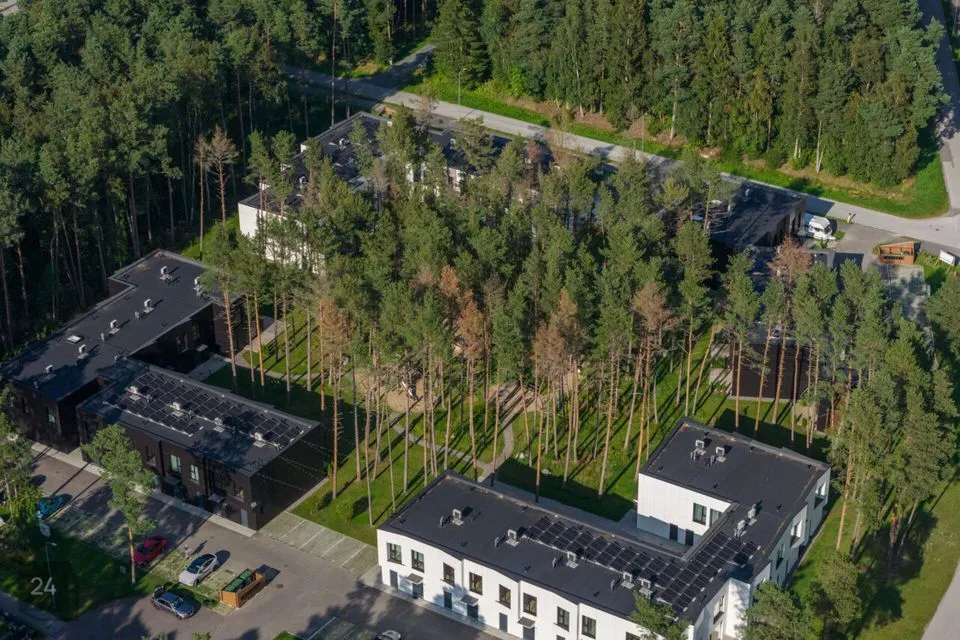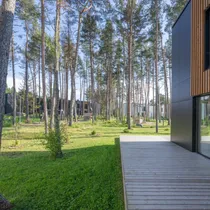 The homes are built using premium natural materials, distinguished by high quality and a clean style. The surrounding pine forest was carefully considered in the design of both the exterior and interior of the Laaneserva townhouses.