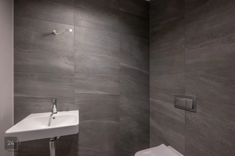 The terraced houses are built from solid concrete blocks (240 mm soundproof walls between homes), with hollow-core concrete slabs used for intermediate and roof structures. The façades feature high-quality Swiss Swisspearl Largo panels.