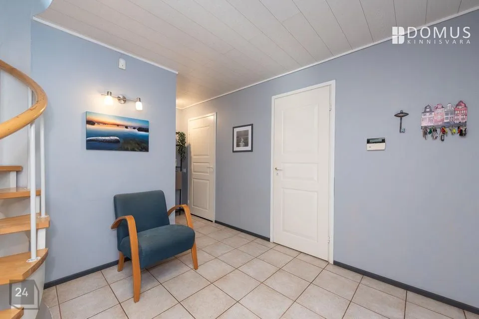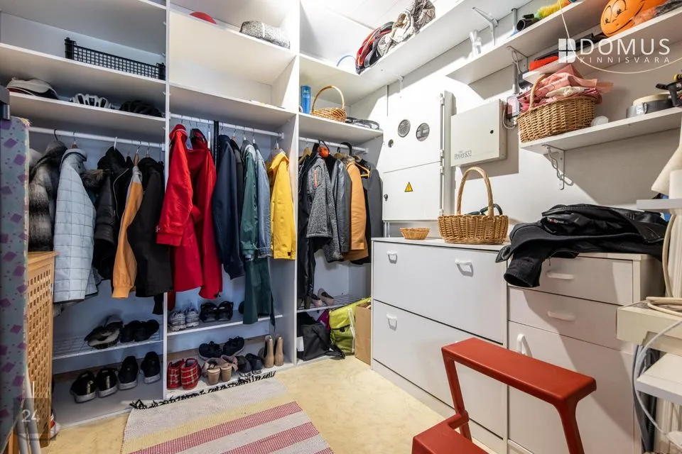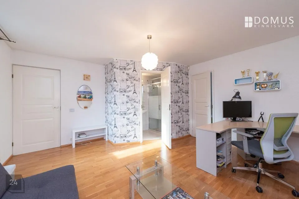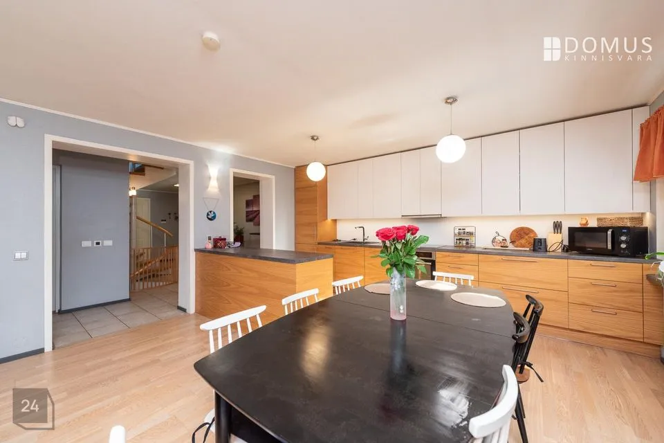 Elupinna paigutus on läbi kolme korruse. Magamistube võiks lugeda neli. Esimese korruse eluruumid on nö põhikorrus kus avatud köögiga elutuba millest pääs terrassile, suur garderoobiga magamistuba, väiksem magamistuba ja pesuruum. Lisaks on esikus, kohe sissepääsu kõrval mahukas walk-in garderoob. Teist korrust saab iseloomustada kui eraldi asetsevat korterit - seal on trepihall, tuba ja selle taga veel üks magamistuba. See sobib ideaalselt veel vanematega koos elavale noorukile. Suurt lisaväärtust annab ka avar teiselt korruselt avanev terrass.