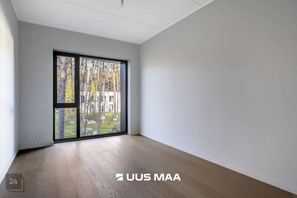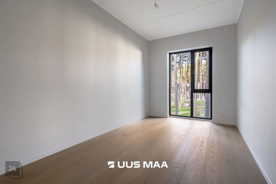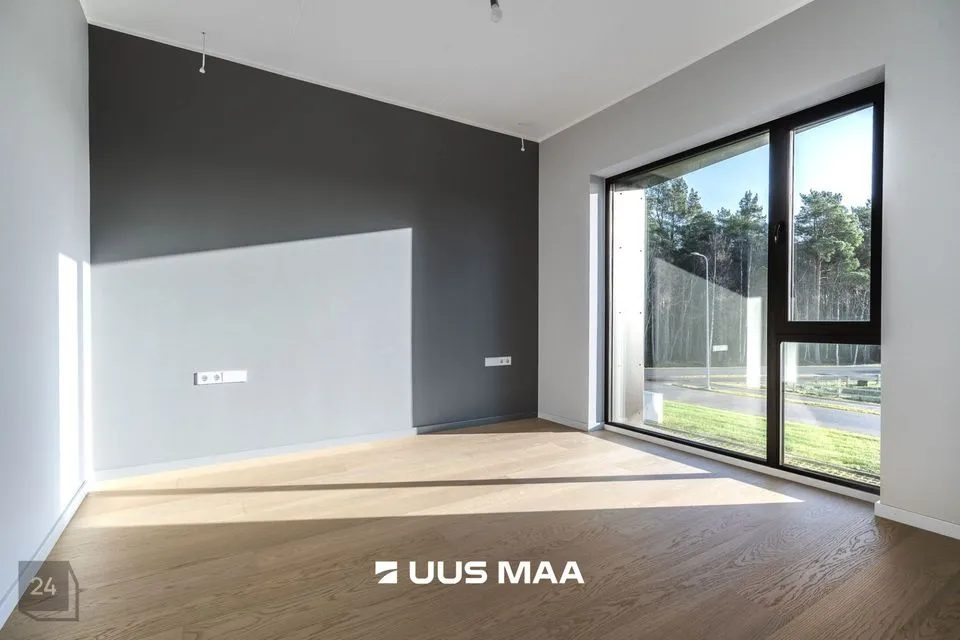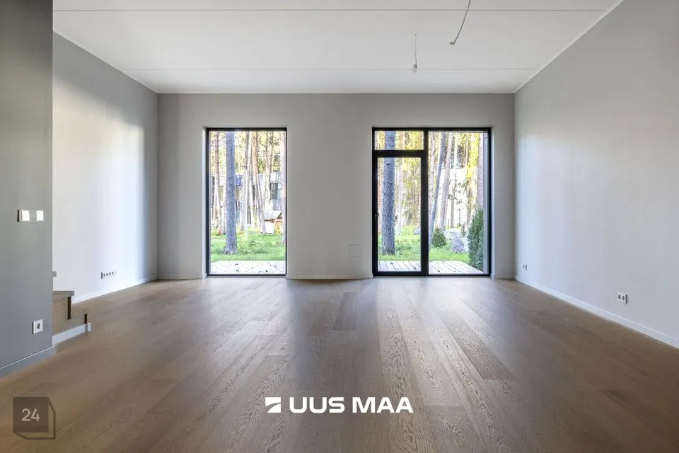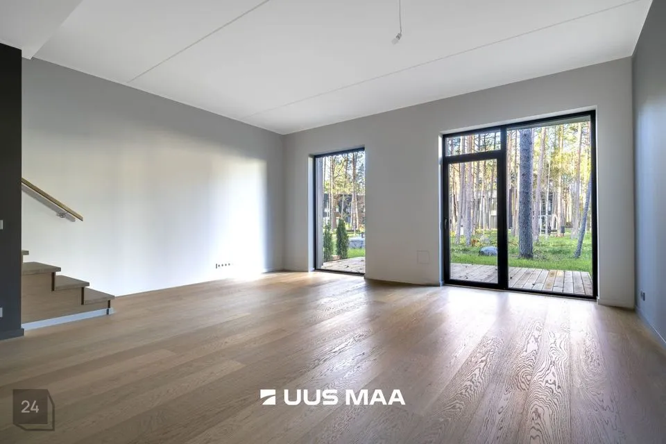 Selles avara boksi esimesel korrusel on erakordselt suur avatud köögiga elutuba, kust pääs otse oma isiklikule 12,9 m2 suurusele männimetsavaatega terrassile, avar suur esik ning wc.