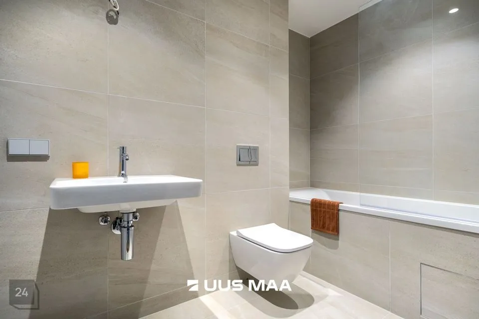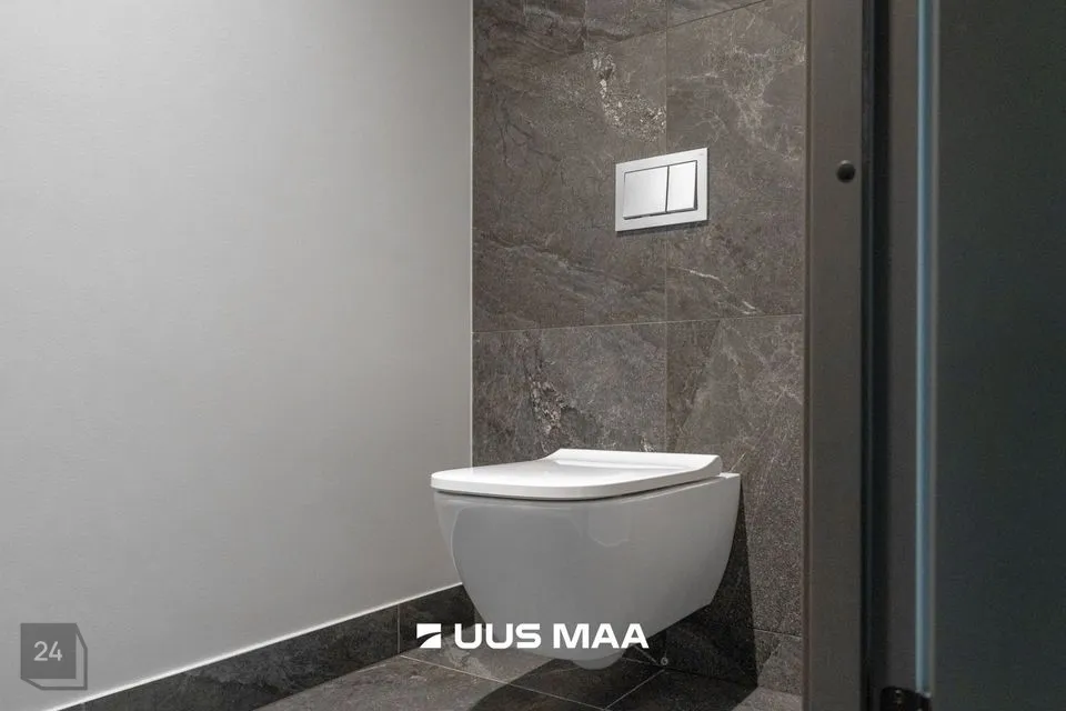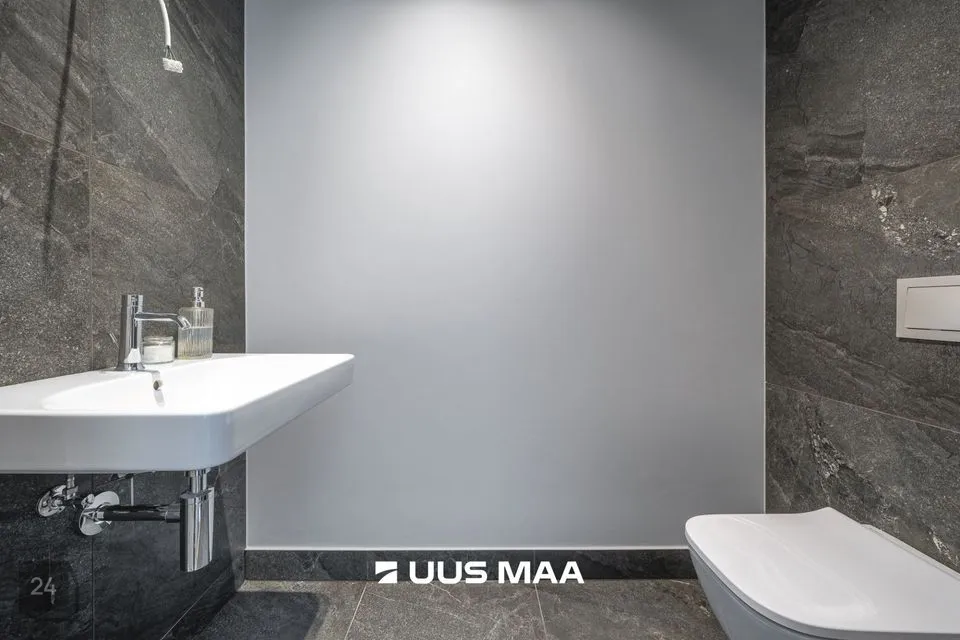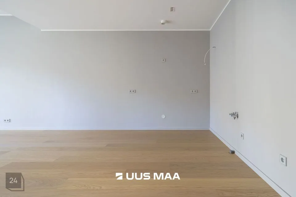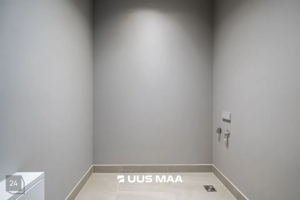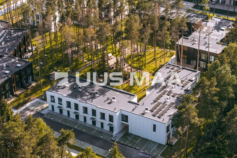 Selles avara boksi esimesel korrusel on erakordselt suur avatud köögiga elutuba, kust pääs otse oma isiklikule 12,9 m2 suurusele männimetsavaatega terrassile, avar suur esik ning wc.