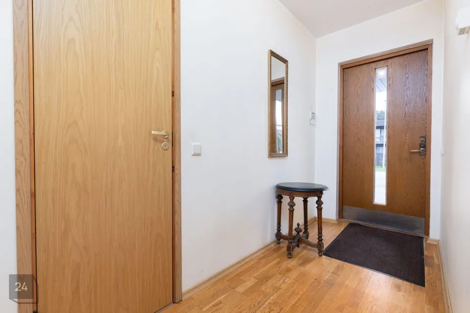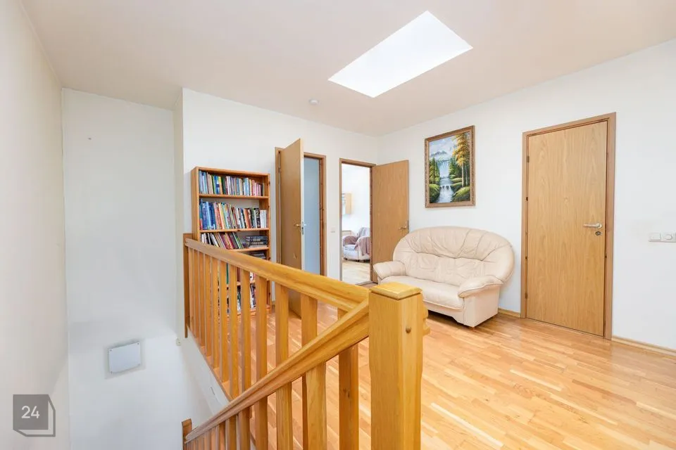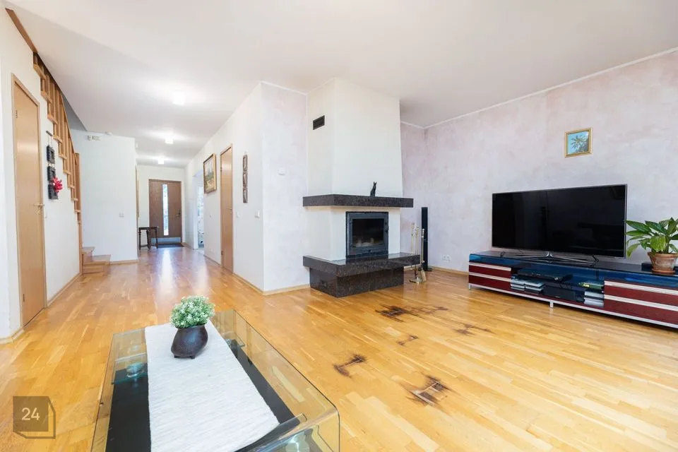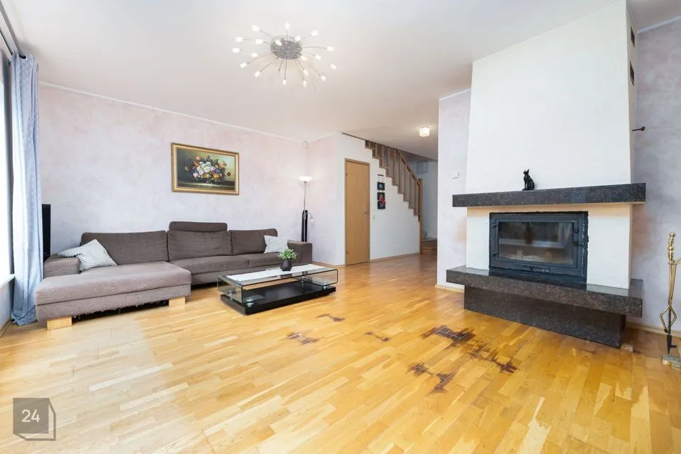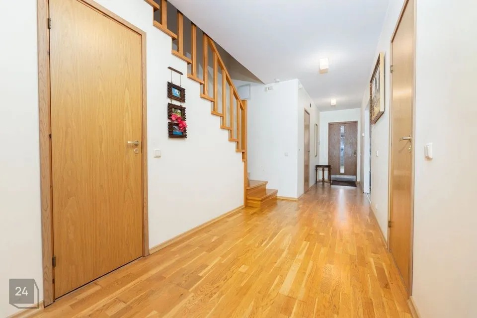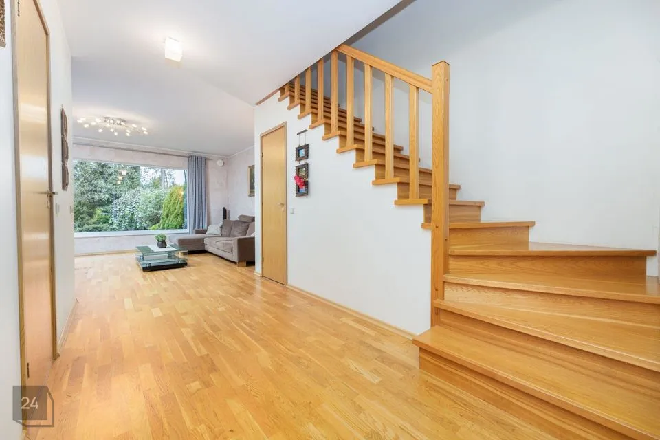Kogu majas on paigaldatud parkettpõrandad ja tammepuidust trepp, mis lisavad interjöörile soojust ja kvaliteeti.