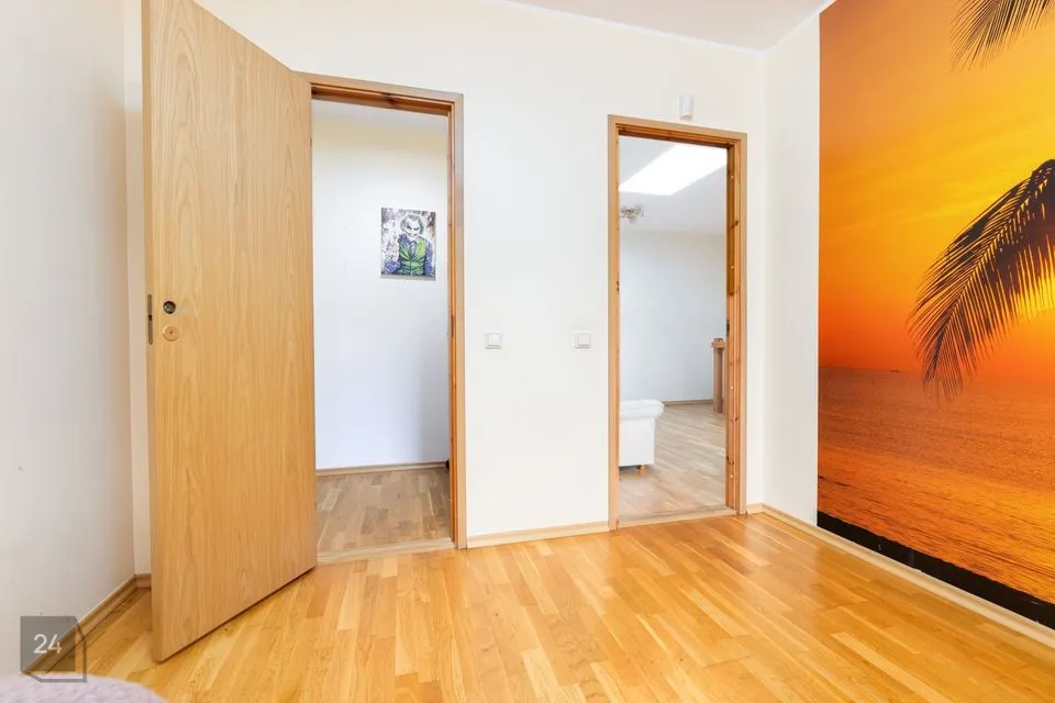 Teisel korrusel on avar trepihall, kolm garderoobiga magamistuba ning mugav vannituba.