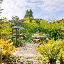 Krunt on kenasti haljastatud ja osaliselt aiaga piiratud, pakkudes privaatsust ja rohelust.