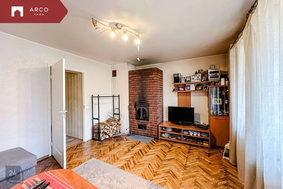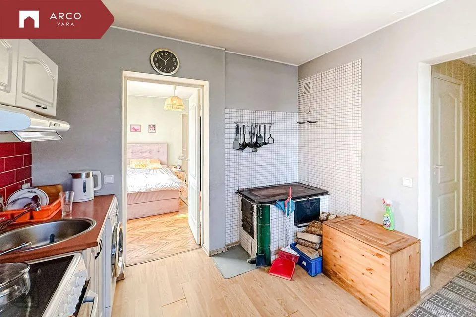 В части дома две комнаты, веранда, кухня, туалет и ванная комната, а также три дополнительные комнаты в подвале, общей площадью 31,8 м2.