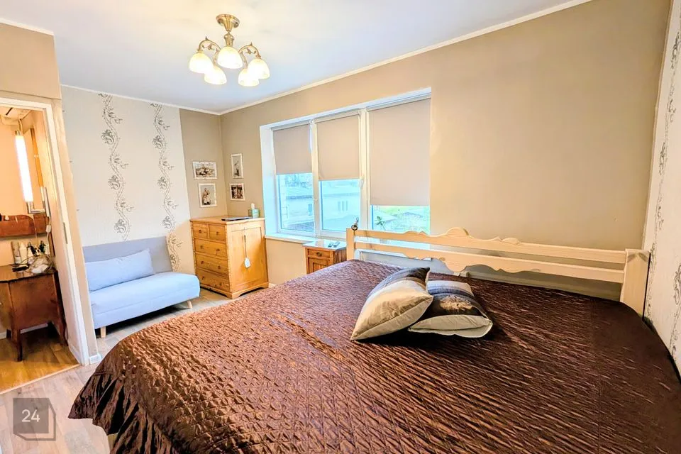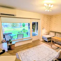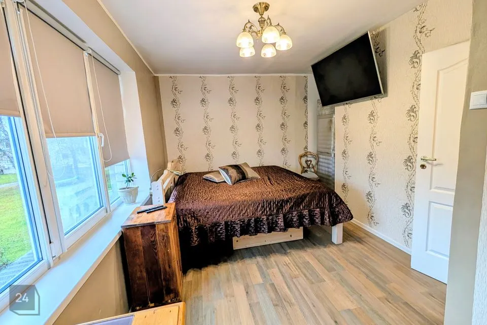Elutuba on läbikäidav ning sealt pääseb otse terrassile ja hoovi. Ühest magamistoast avaneb vaade maja ette, teisest hoovi poole.