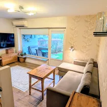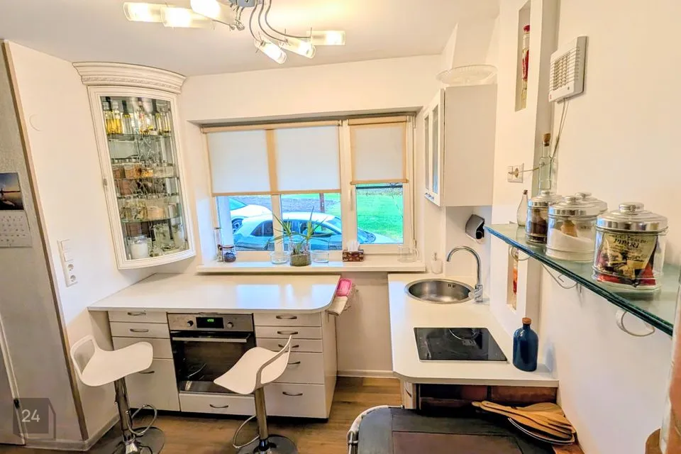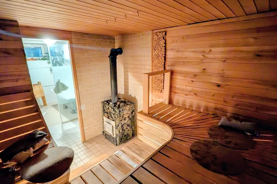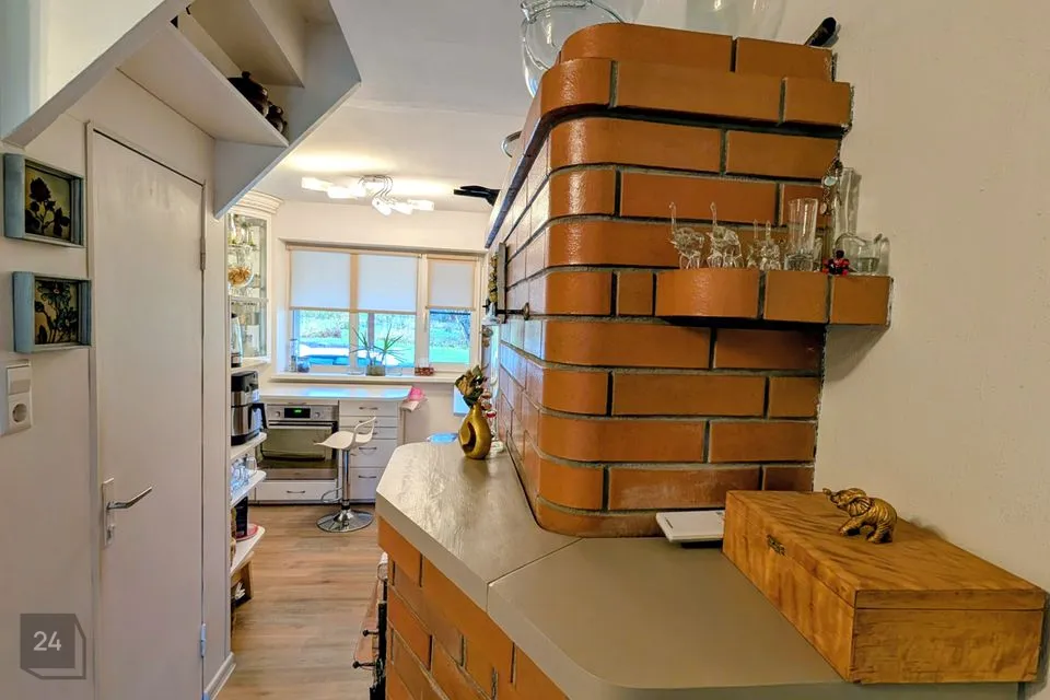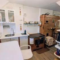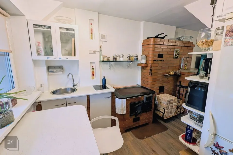Köögis on olemas elektripliit, elektriahi, puuküttega pliit (soojamüüriga), valamu ning köögimööbel. Elutoas on kamin, mis loob hubasust ja lisasoojust.