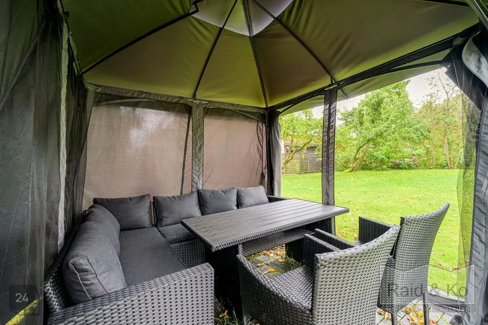 Avaral kinnistul on ruumi autode parkimiseks ning privaatne aed puhkamiseks – kasutamist ootab mõnus aiamööbel ja grill.