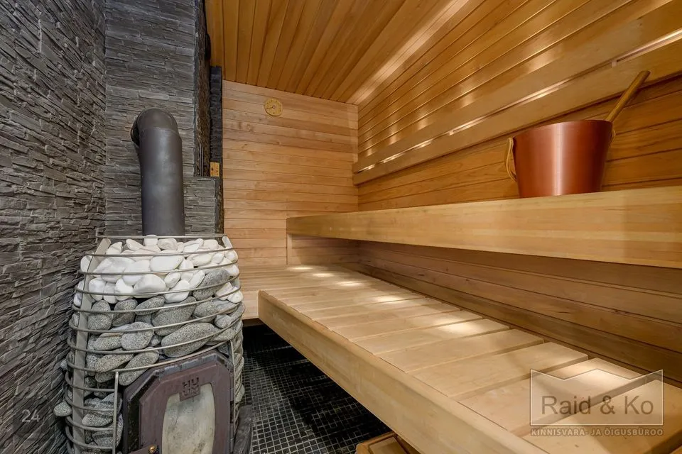 0-korrusel on majandusruum, saunakompleks, väike kabinet/magamistuba ja sauna eesruum, mida samuti saab kasutada magamistoana.