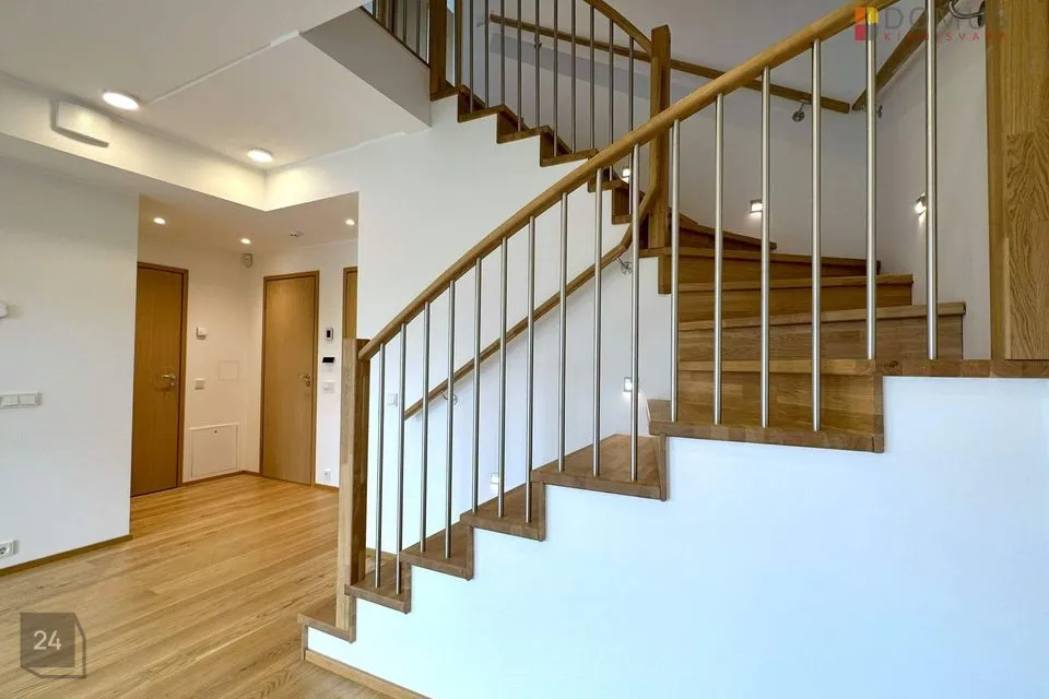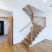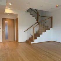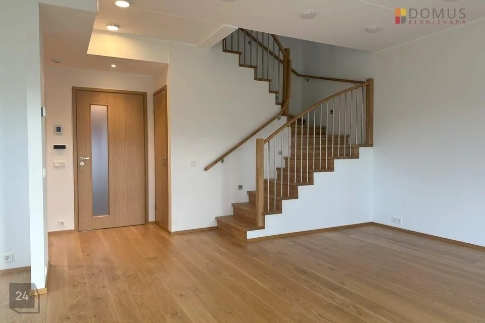 Põrandatel on naturaalne 1-lipiline tammeparkett ja elutoast viib teisele korrusele tammepuidust trepp.