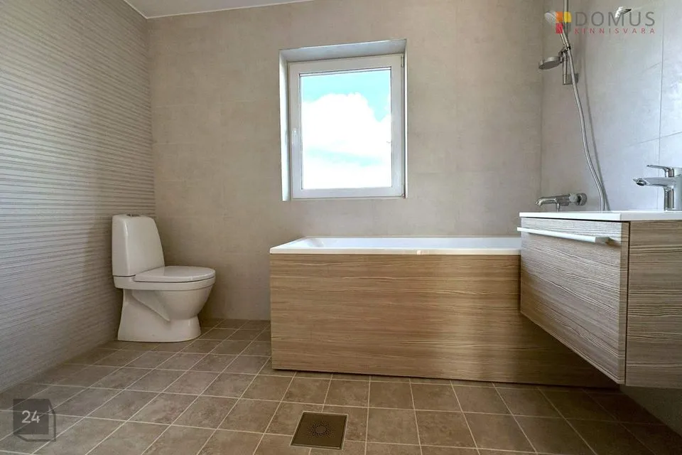 Majaosa on kahekorruseline ja eluruumide pindala on 124 m². Lisaks terrass 24 m² ja privaatne hoov suurusega ca 770m².