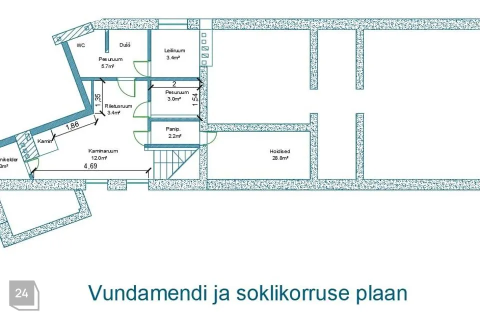 Maja all on terves ulatuses ca 1,4 m kõrgune kelder.