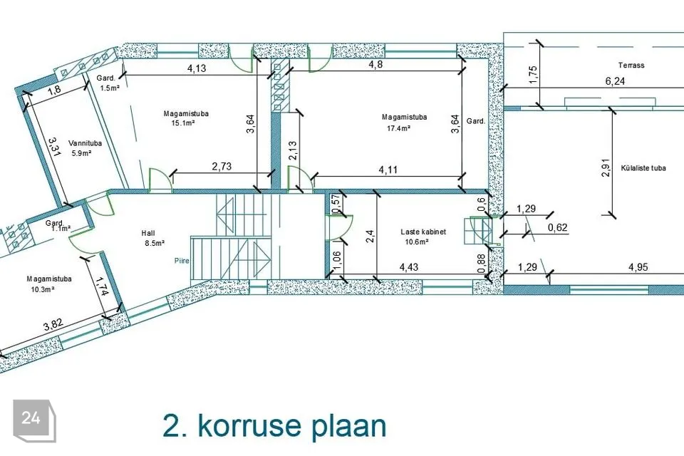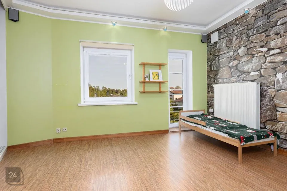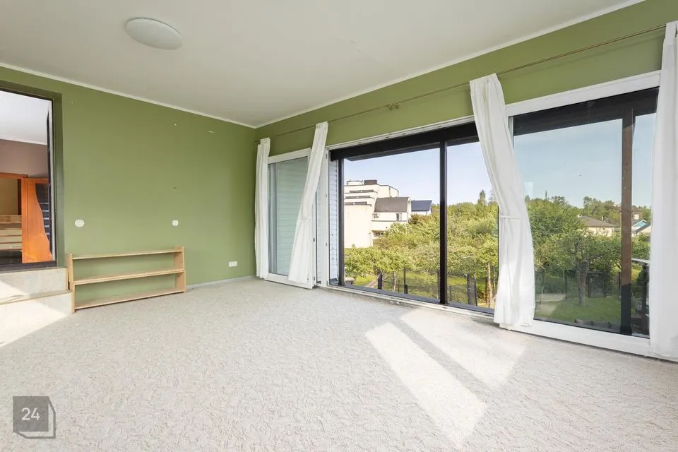 Trepist üles aga jääb 3 magamistuba, millest üks on läbikäidav ning hetkel väikese kontorina (laste õppimistoana kasutusel), ühes on külalistetuba/mängutuba ning üks avar ja väga valgusküllane vaipkattega ruum, mis sobib ideaalselt nii magamistoaks või miks mitte, ühiste teraapiate või jooga läbiviimiseks. Viimasest toast pääseb ka avarale rõdule.
