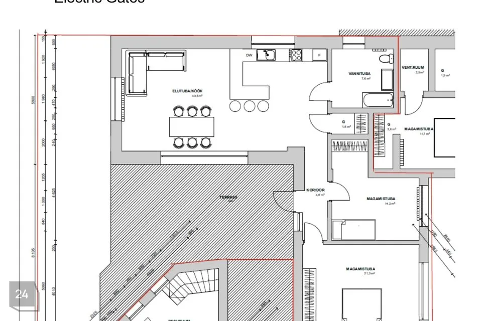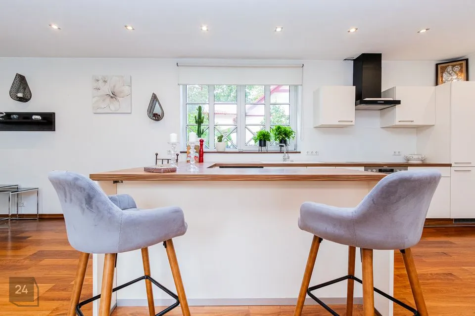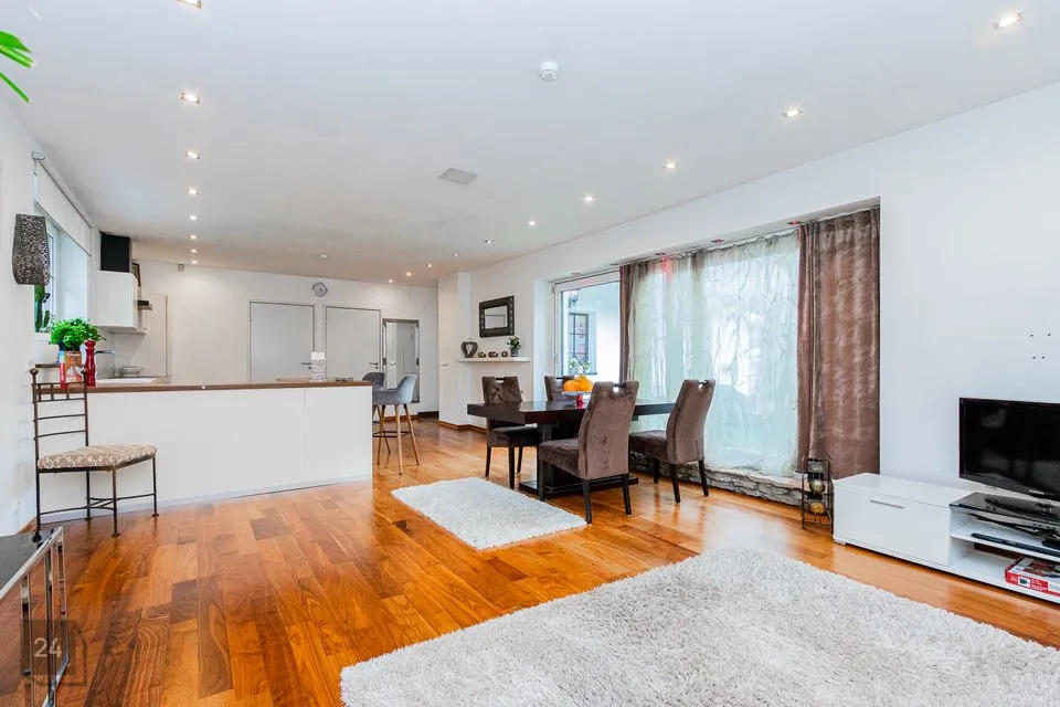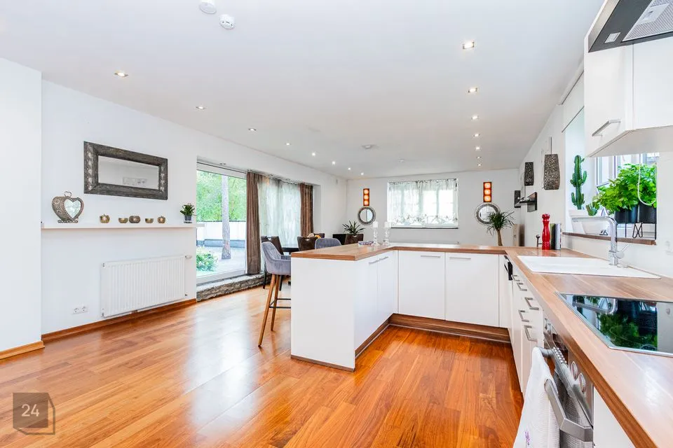 Korter on 95 m² suurune ja koosneb elutoast avara köögiga, mis on jagatud köögi-, elu- ja söögipiirkondadeks, kahest magamistoast, vannituba /WC-st, terassist 40 m2 ja privaatsest parkimisalast kahele autole.