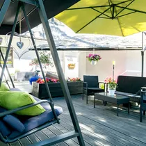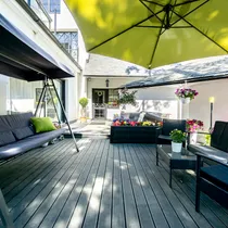 Elutoast läheb uks 40 m² terassile. See on suurepärane koht päikese nautimiseks ja einestamiseks.