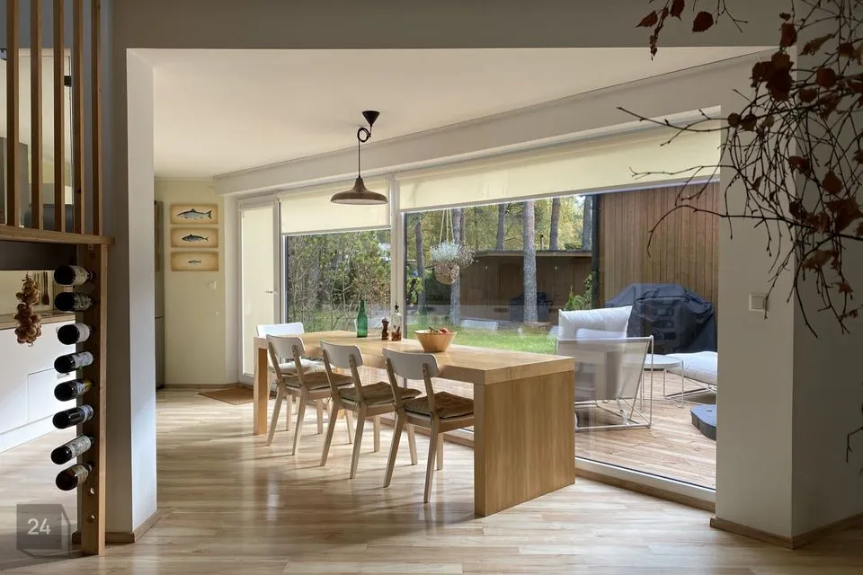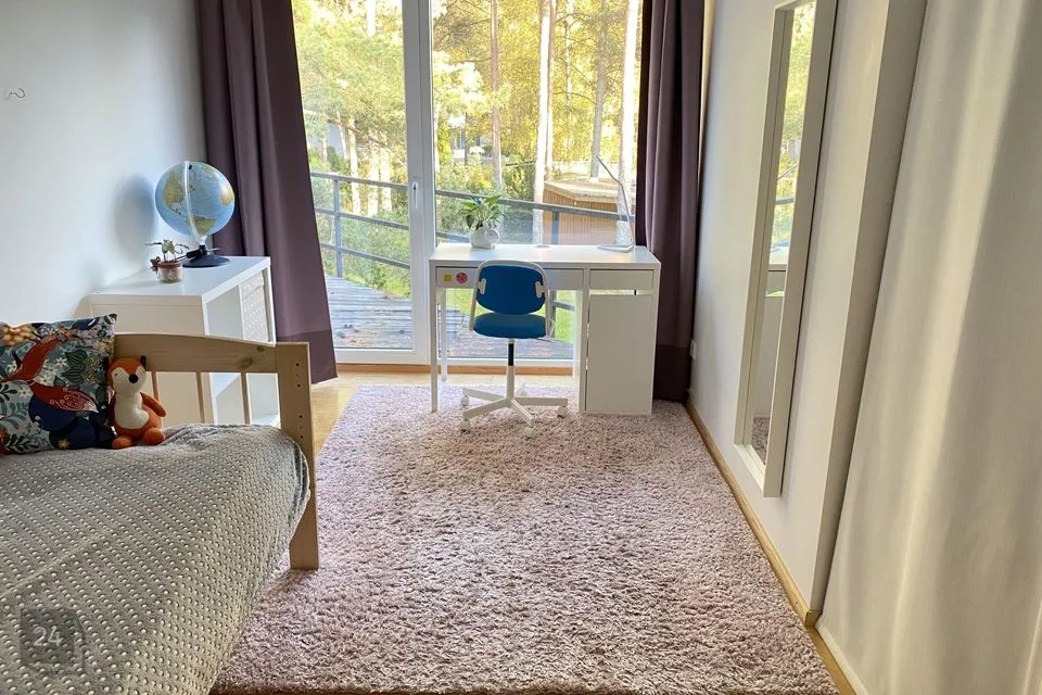 Avatud elutuba ja köök, kolm magamistuba, kaks vannituba ja saun. Otse köögist pääseb avarale ja tuulevaiksele terrassile, kus ilusa ilmaga aega veeta.
