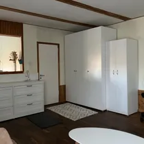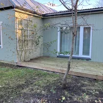 Esik, suur ja hubane tuba-köök, terass. Kütteallikas on pelletikamin.