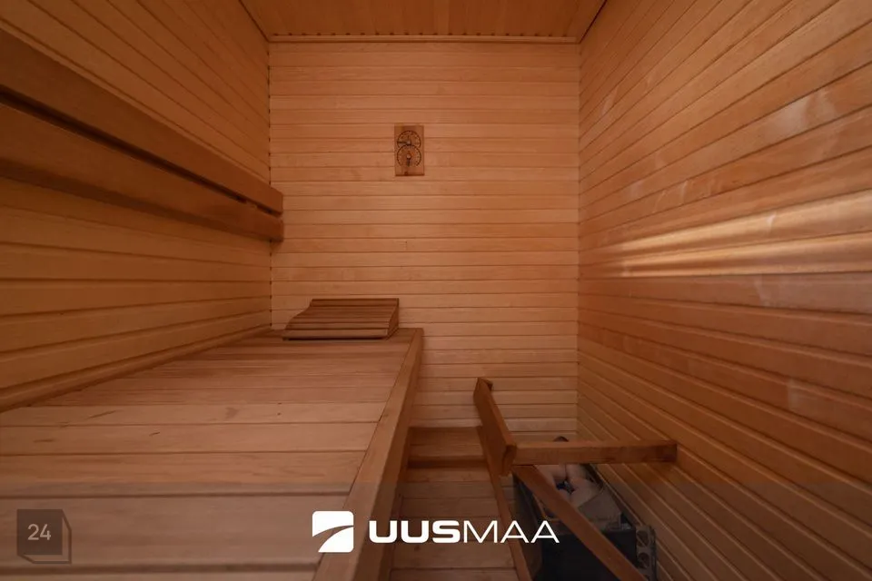 1.korrusel asuvad: esik, garderoob/panipaik, avatud köök, elutuba, majapidamisruum, tualett-duširuum ja saun.