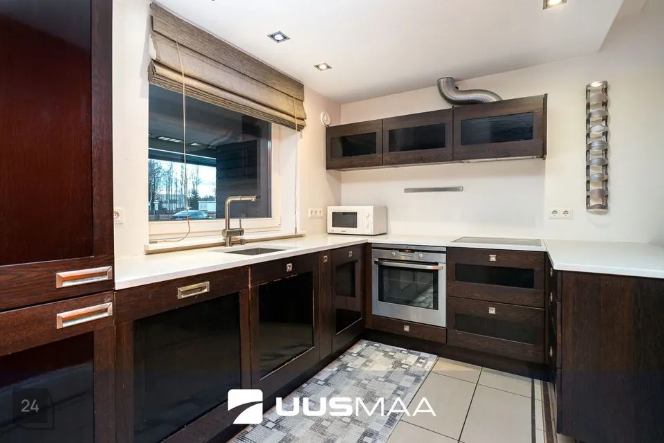 Funktsionalistlikus stiilis täiskivimaja on raudbetoon vahelagedega, aknad ja rõdu/terrassi uksed puidust, põrandatel täispuitparkett + kiviplaat. Siseviimistluses kasutatud keskmisest kallimaid materjale. Küttesüsteemi südameks on GAASIKATEL: esimesel korrusel vesipõrandküte + radiaatorid, teisel korrusel radiaatorid, niisketes ruumides elektripõrandküte. Mehhaaniline väljatõmme niisketest ruumidest, magamis- ja elutubades värske õhu fresh klapid. Elektrivõimsust 3X25A. Kõik kommunikatsioonid tsentraalsed, Elisa, G4S koduvalve.