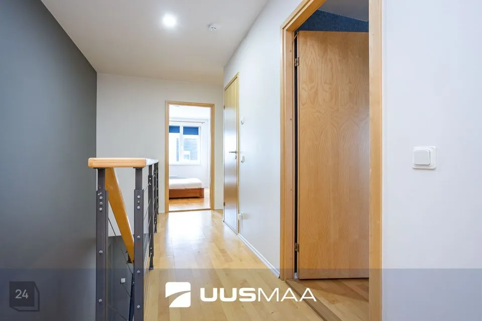 II KORRUS - Teisel korrusel on 3 magamistuba, suurem on ruumikas ja valgusküllane, kust pääseb rõdule. Mööbli esemetest on ainult suur liugustega sisseehitatud garderoobikapp, teised toad on mööbleeritud. Vannituba on koos saunaga kust pääsub samuti rõdule, eraldi wc. Ridaelamu juurde kuulub panipaik 5,6m2.