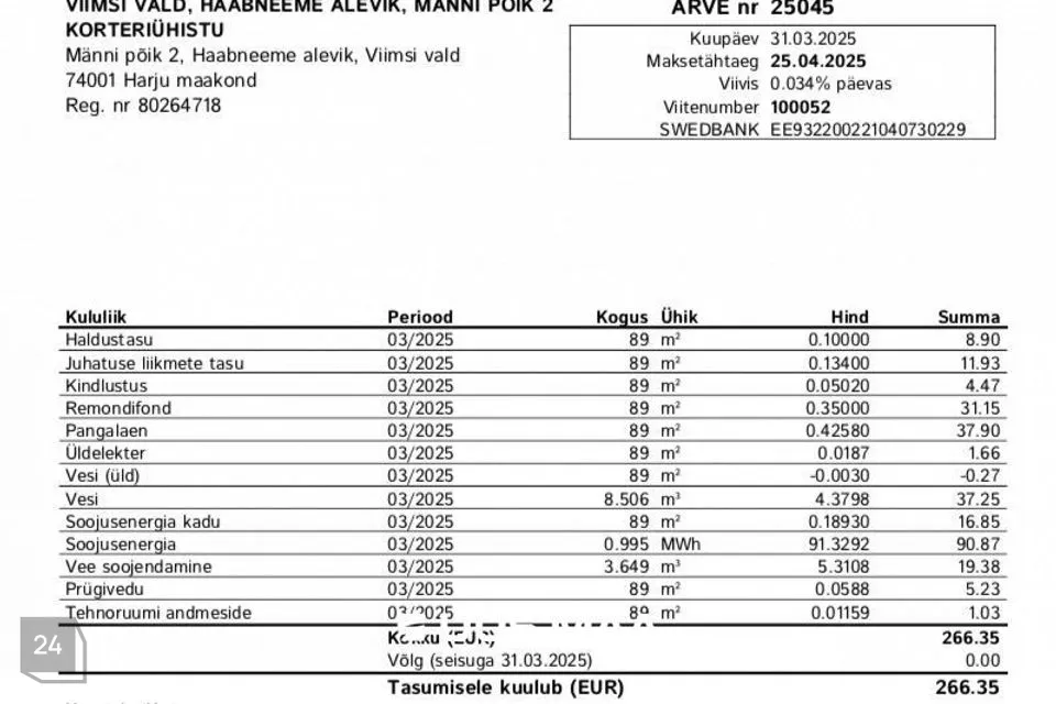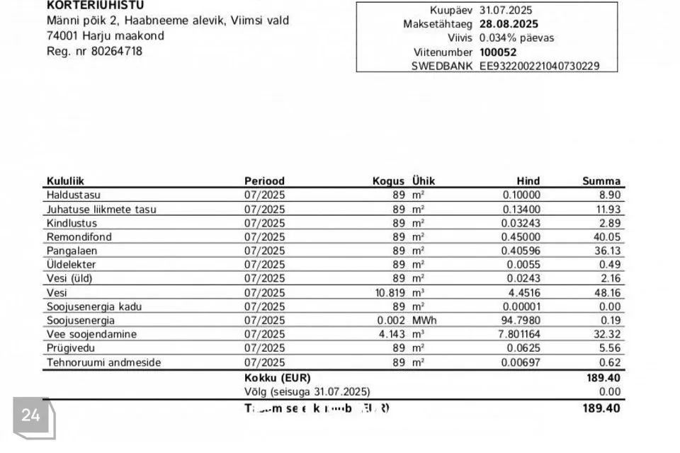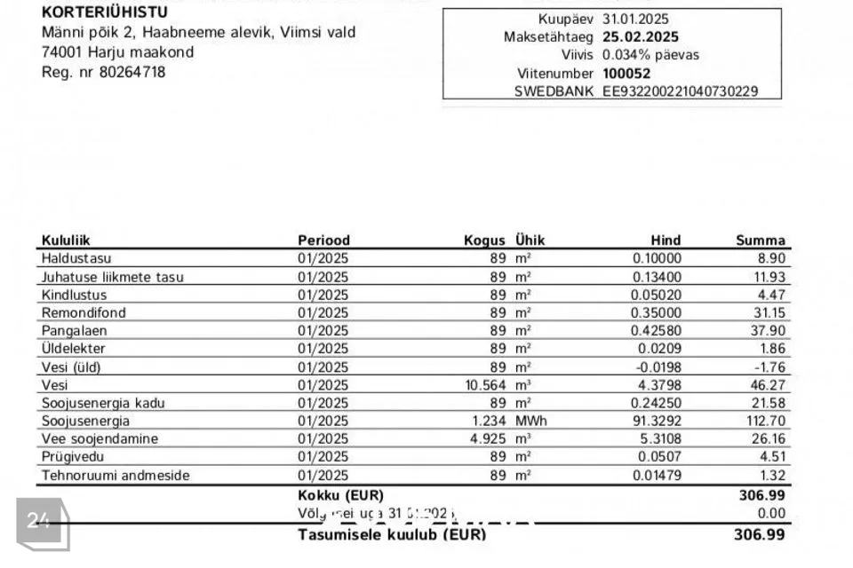 Selle kodu kommunaalarved on väga mõistlikud - suvel ca 190 ning talvel kuni 270 eurot.