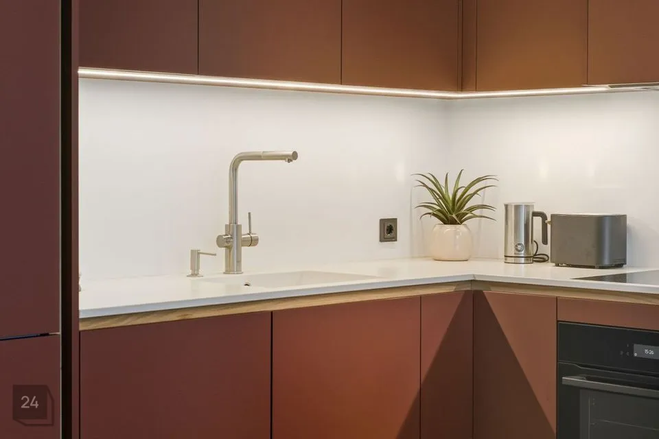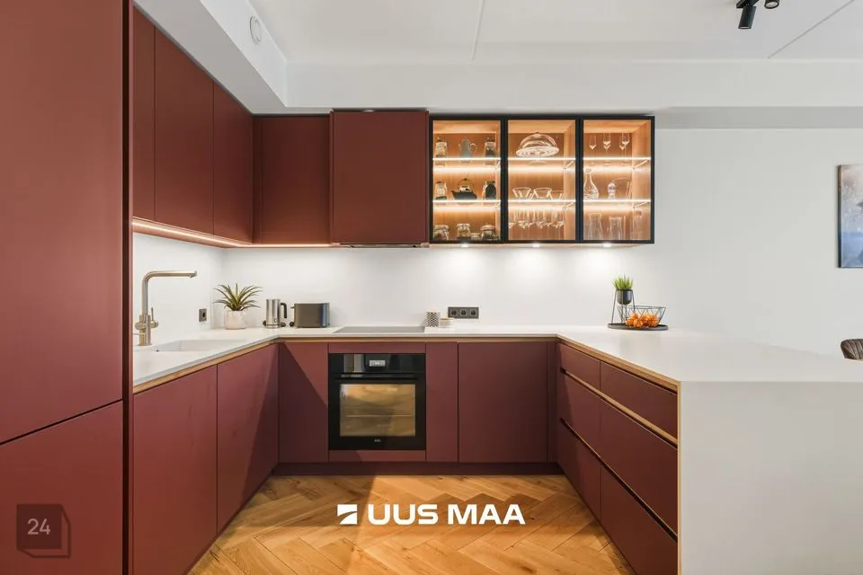 Edasi liikudes jõuad avara elutoa ja köögini, mis moodustavad kodu keskme – ruumi on nii kokkamiseks kui ka puhkehetkedeks. Kvaliteetne köök, naturaalsed materjalid ja moodsad toonid loovad rahuliku ja kutsuva atmosfääri.