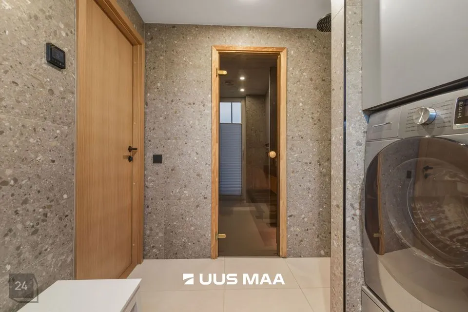 Uksest sisenedes jõuad ruumikasse esikusse, kus paremal käel asuvad saun, eesruum ning pesumasin ja kuivati. Esikus on rohkelt kappe.