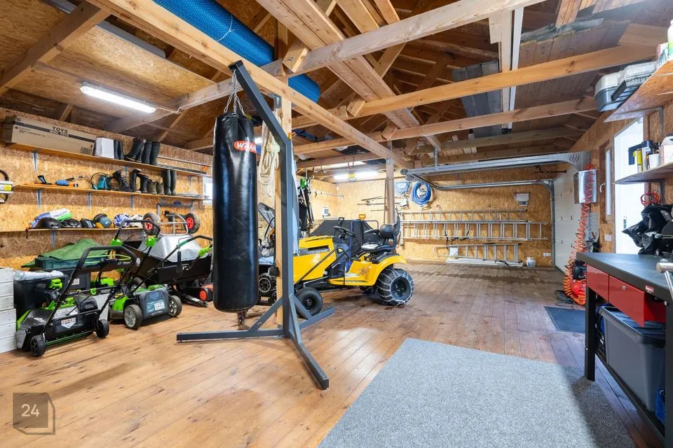 Kinnistul paikneb ka ruumikas abihoone, mis sobib suurepäraselt hobi või tööruumiks. Lisaks on kasvuhoone, mis on loodud just nii, et aiahuvilised saaksid suvel oma taimedega rahulikult nokitseda ning sügisel saab hoidised majas paiknevasse panipaika talveks valmis panna.