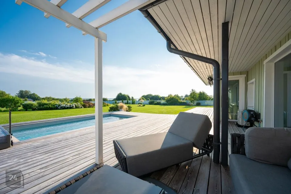 Eraldi lisaväärtusena on majale rajatud 35,2 m² suurune talveaed, mis on ehitatud karastatud klaasist ning mille põrand on soojustatud. Klaasist lükanduksed võimaldavad vajadusel ruumi avada ja ühendada see suvisel ajal hooviga. Siit avaneb erakordne vaade merele ning erinevatest ilmakaartest on võimalik nautida nii päikesetõuse kui ka -loojanguid.