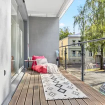 Müügile on saabunud heledates toonides, eriti suure ja mõnusa rõduga korter Tallinna südames, Kadriorus.