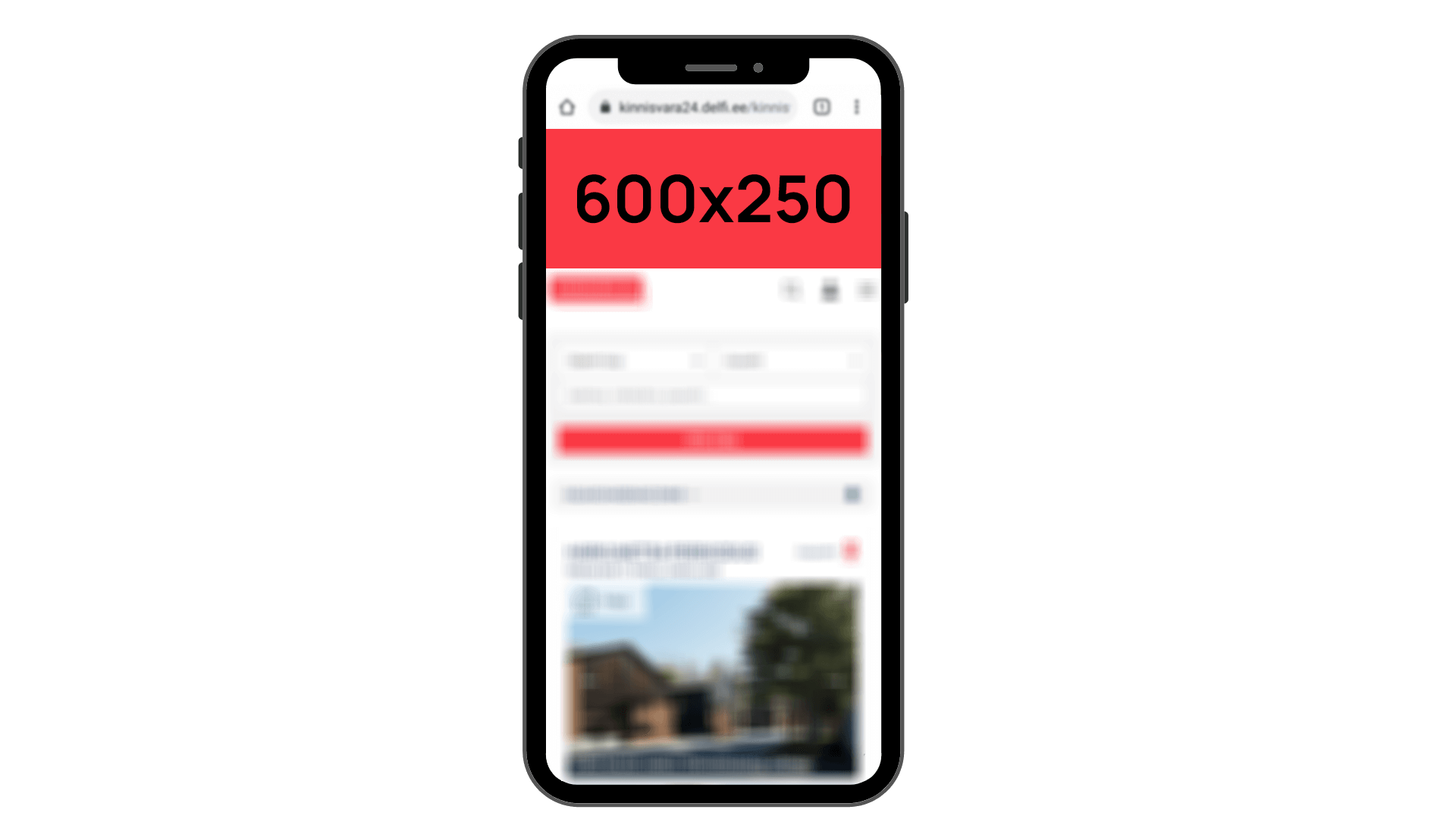 Mobiili siteheader on lehe laiune reklaampind Kinnisvara24 lehe ülaosas. Reklaam ilmub kinnisvaraotsingute päises. Kokku roteerub kuni 2 erinevat reklaami.