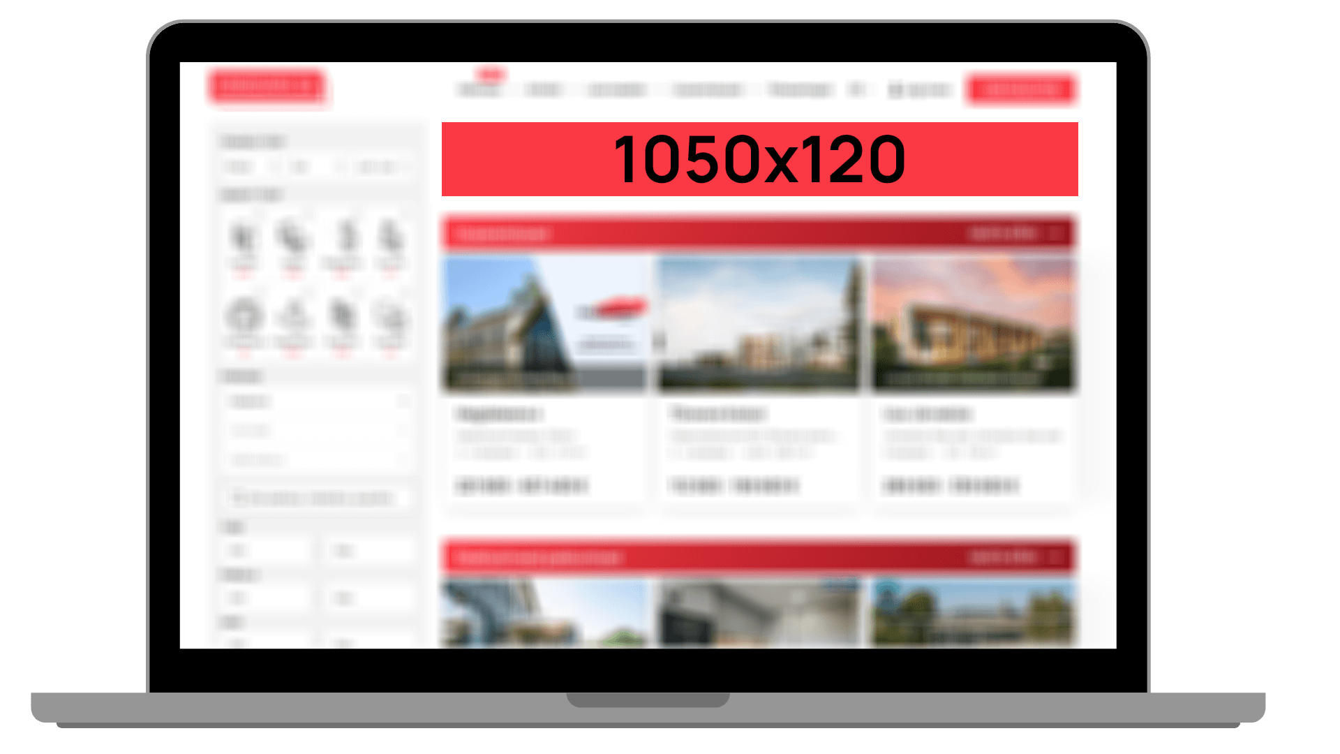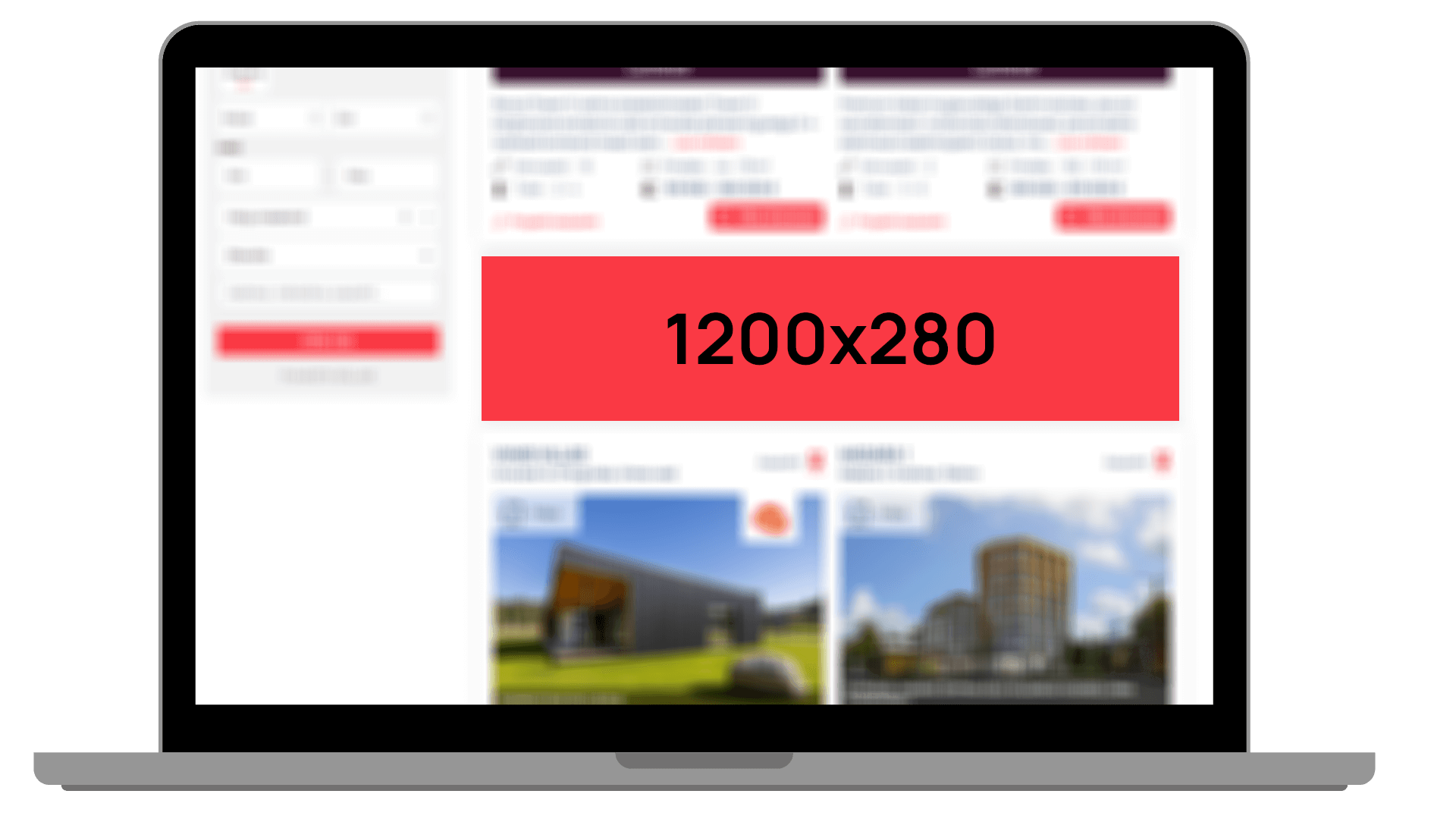 Uusarenduste siteheader on terve lehe laiune reklaampind kinnisvara24.ee/uusarendused alamlehe ülaosas. Reklaam ilmub läbivalt uusarenduste otsingulehel ja uusarendusprojektide detailvaates. Juhime tähelepanu, et uusarendusprojektide detailvaates ei kuvata teiste arendusprojektide reklaame. Kokku roteerub ainult üks reklaamkampaania.