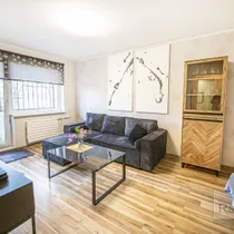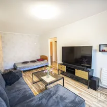 В квартире недавно был проведен капитальный ремонт, окна заменены, на полу ламинат, стены частично оклеены обоями. В ванной комнате исправная сантехника и современные сдержанные кафельные плитки. В просторной кухне есть всё необходимое для жизни, а в прихожей также имеется вместительный кладовой шкаф.
