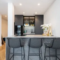 К квартире прилагается просторное подсобное помещение, и время от времени предлагается место для парковки в гараже.