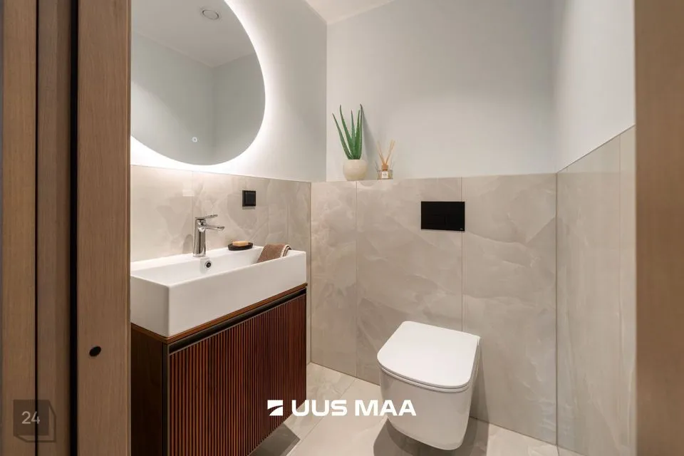 Механическая вентиляция сохраняет свежесть воздуха в помещении; устройства спрятаны в подвесных потолках санитарных узлов.