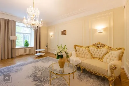 Люксовая квартира с высокими потолками в отремонтированном доме со своим двором
