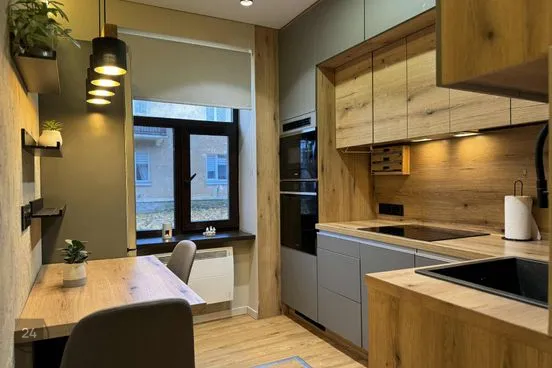 В стоимости продажи включена кухонная мебель с встроенной газовой плитой.
