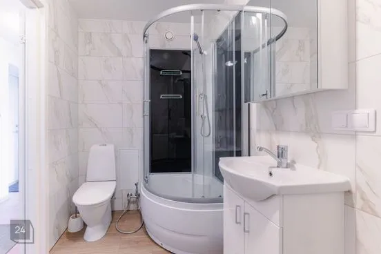 Квартира в отремонтированном многоквартирном доме с удовлетворительным состоянием. Душевая комната недавно отремонтирована. Остальные помещения требуют обновления.