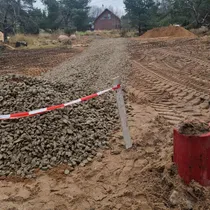 На участке будет построена подъездная дорога по сервитуту текущим владельцем или, по соглашению, новым владельцем.