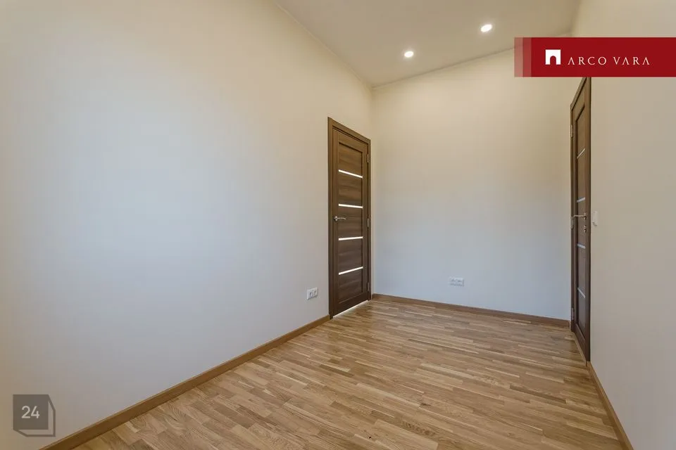 The floor is covered with a beautiful 4-ply oak natural parquet.