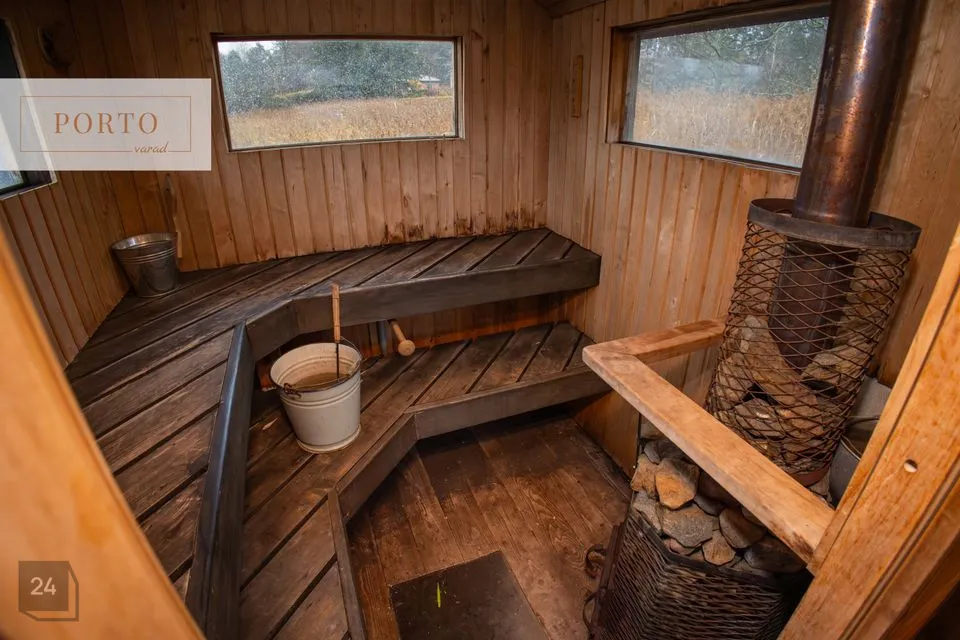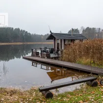 На берегу озера находится личный причал и небольшая пляжная полоса, которые позволяют наслаждаться приватным местом для купания. Рядом с причалом расположена плавучая сауна, предлагающая особые банные впечатления прямо на озере.