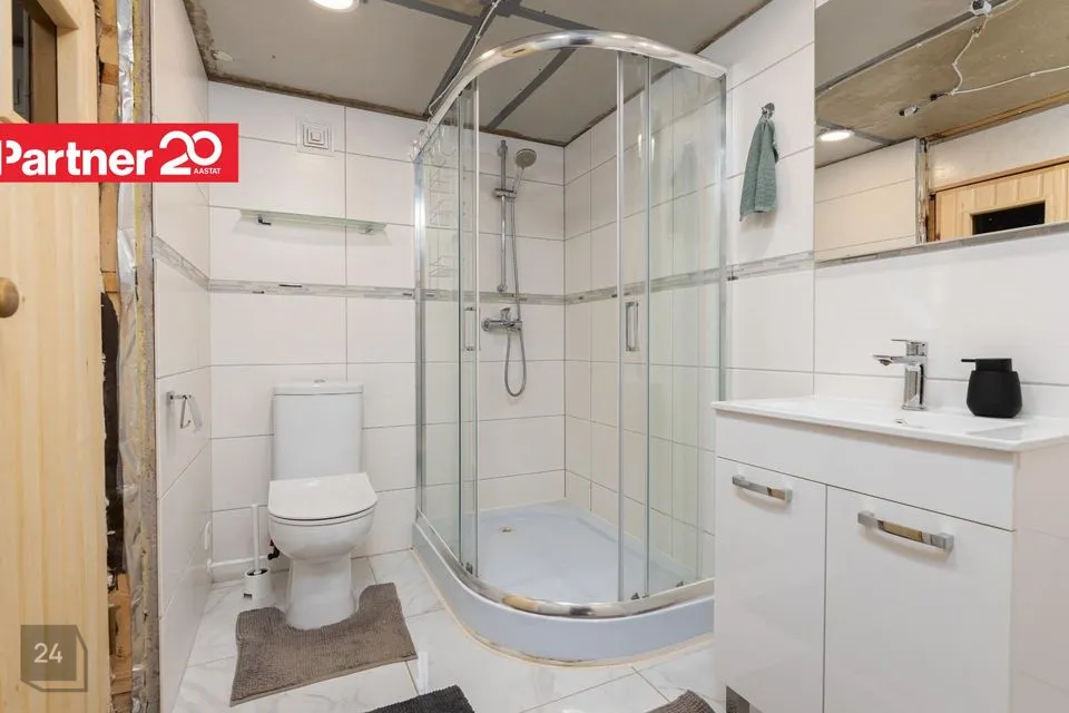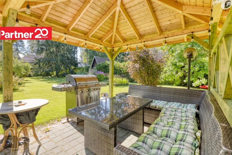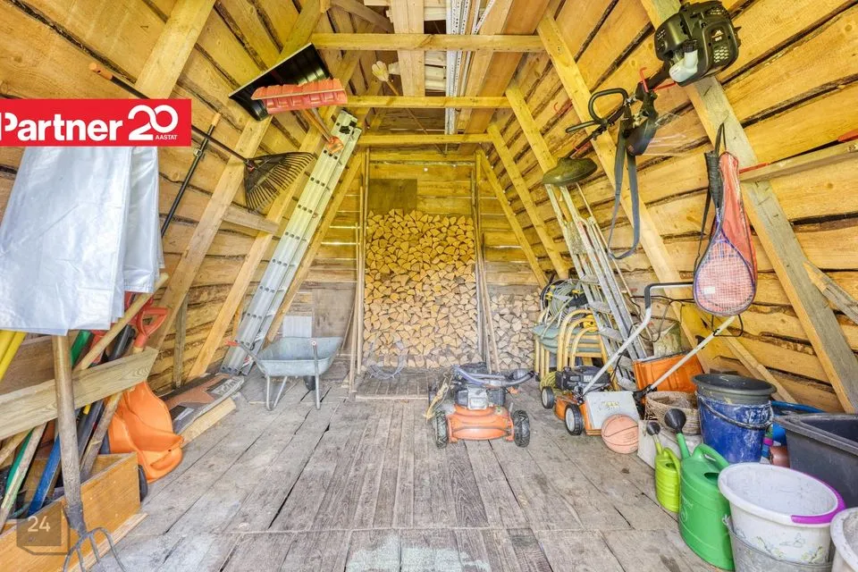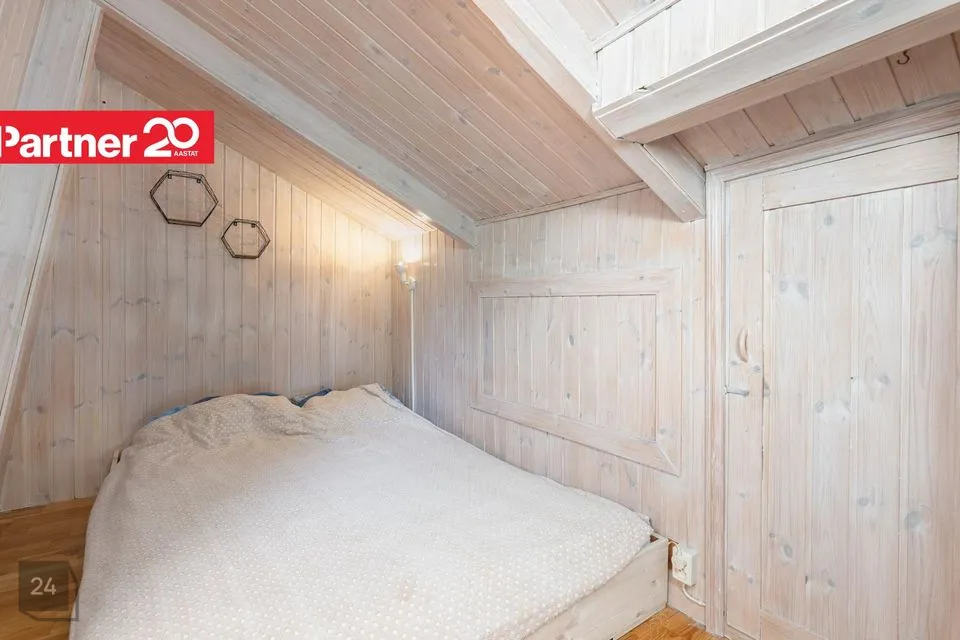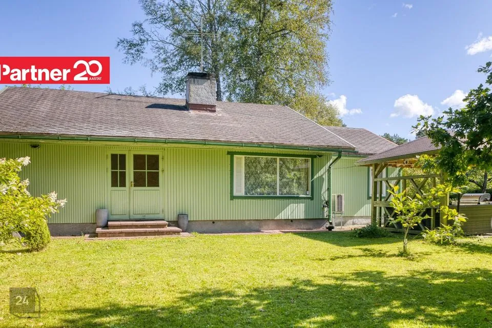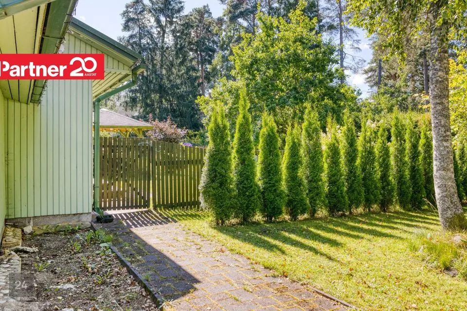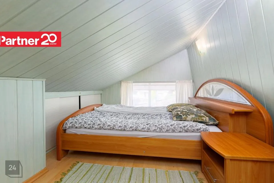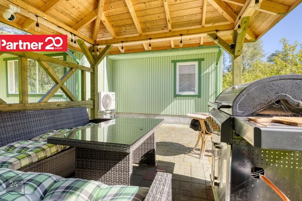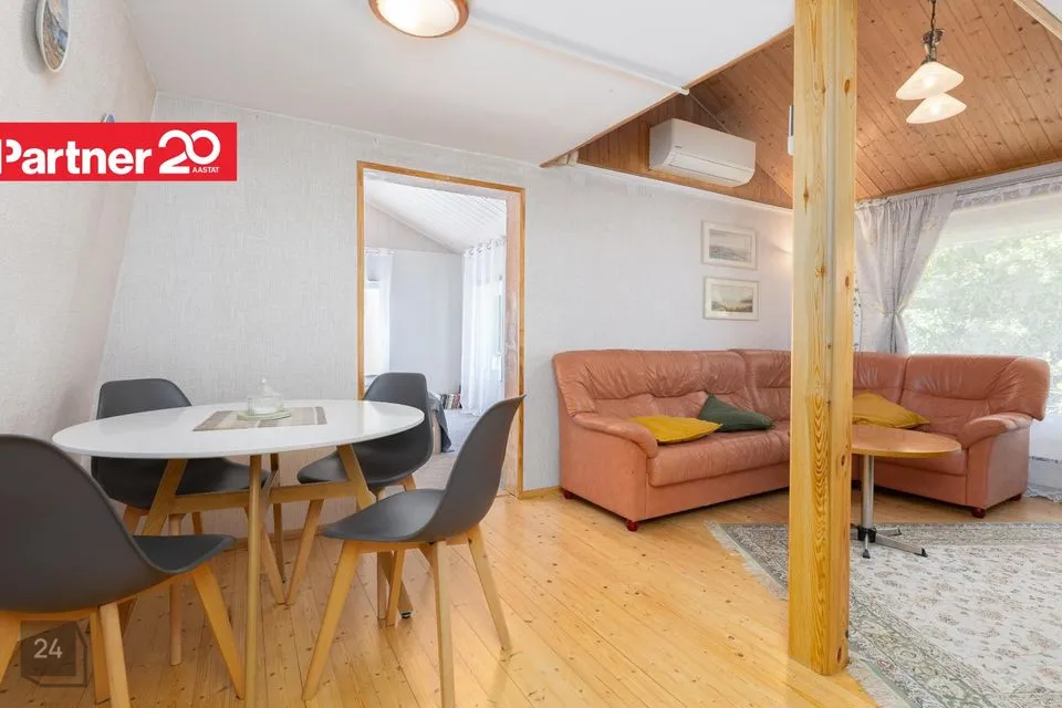 Naage Village, located near Vääna-Jõesuu, offers a two-story wooden house surrounded by high hedges and a private garden. Although designated as a summer house, its condition allows for year-round living.