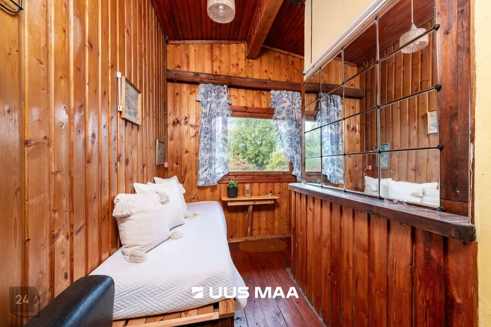 Suvilas on eraldi kööginurk, kaks tuba, dušinurk ning puitkerisega saun – ideaalne kombinatsioon lihtsast ja toimivast suvekodust.
