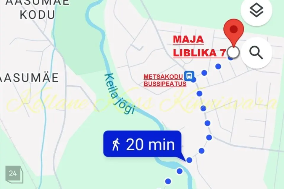 Vilivere rongijaam asub 1,5km kaugusel majast, seda vahemaad kõnnib 20 minutit (vaata fotot jalgsikäigu trajektoorist).