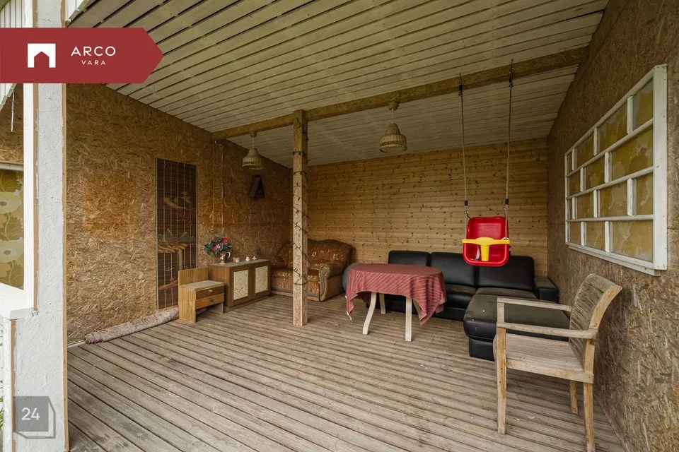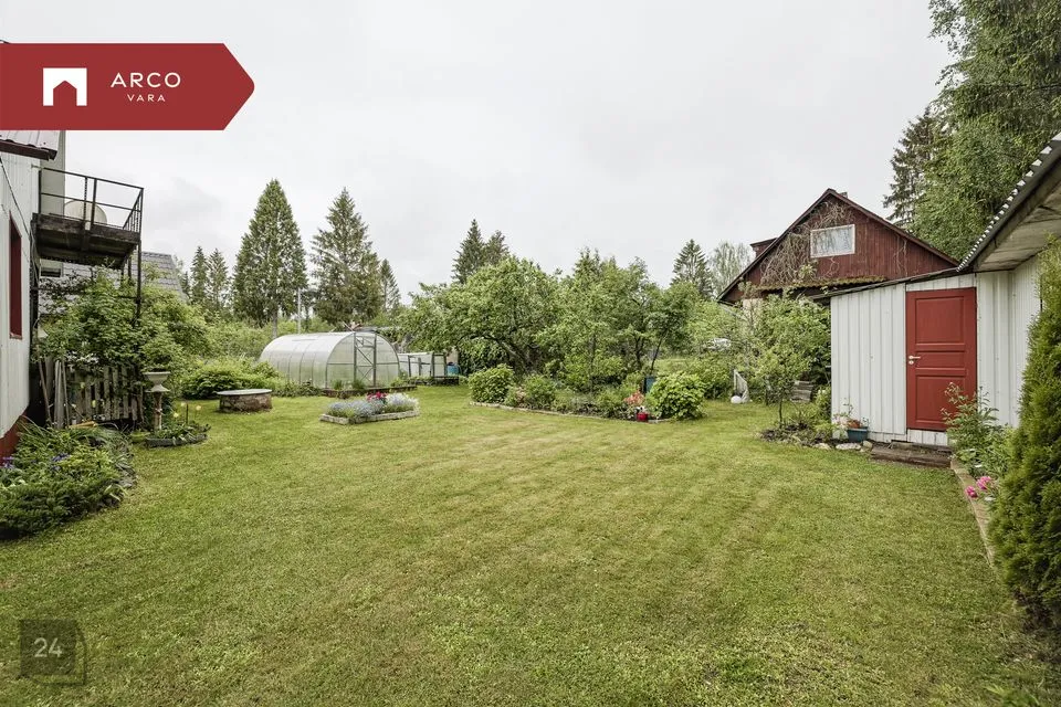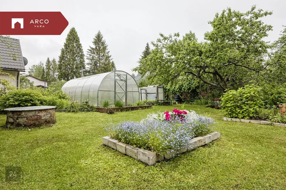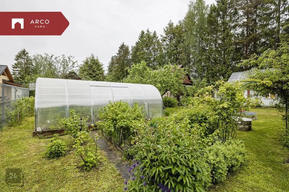 Kõrvalhoones on saun ja abiruumid, lisaks on krundil kasvuhoone.