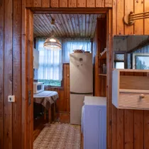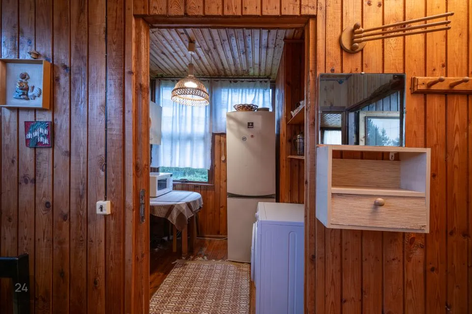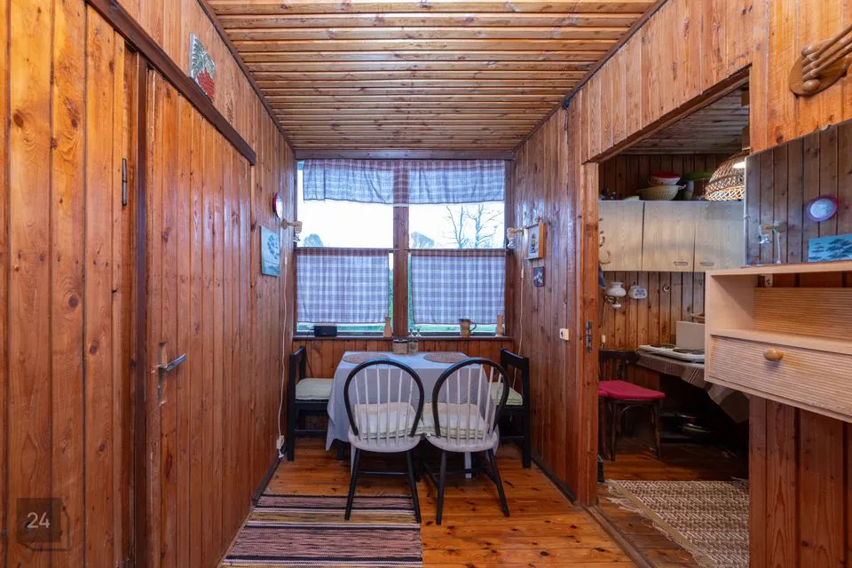 1992 aastal valminud aiamajas on kolm tuba ning köök, kokku 34,3 m2. Aiamaja on mõelnud kasutamiseks suveperioodil, jahedama ilmaga teeb olemise mõnusaks soojust salvestav kamin. Olemas on kuivkäimla, pesemisvõimalus aiamajas puudub. Kinnistul on kõrghaljastus, aed on hooldatud ning murukatte all.
