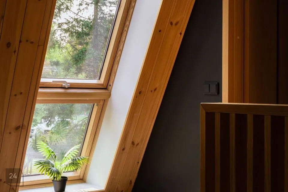 Maja ise on omanäolise karakteriga: kõrged kaldlaed ja valguse mäng loovad avara ning õhulise atmosfääri. Elutuba ja köök on ühendatud üheks tervikuks ja tänu ligi kaheksa meetrisele laekõrgusele on siin ruumi hingamiseks – nii kehal kui vaimul. Kaks magamistuba on privaatsed ja hubased, vannituba jätkab kogu kodu rahulikku, looduslähedast joont.