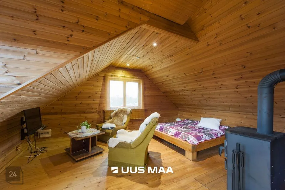 Teisele korrusele jäävad üks suurem elutuba 30 m² hubase kööginurga ja metallist kamin-ahjuga ning suure terrassiga, kuhu paistab lõuna- ja õhtupäike ja teine väiksem magamistuba 10 m² rõduga, samuti ka koridor ja boileriruum.
