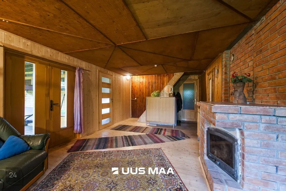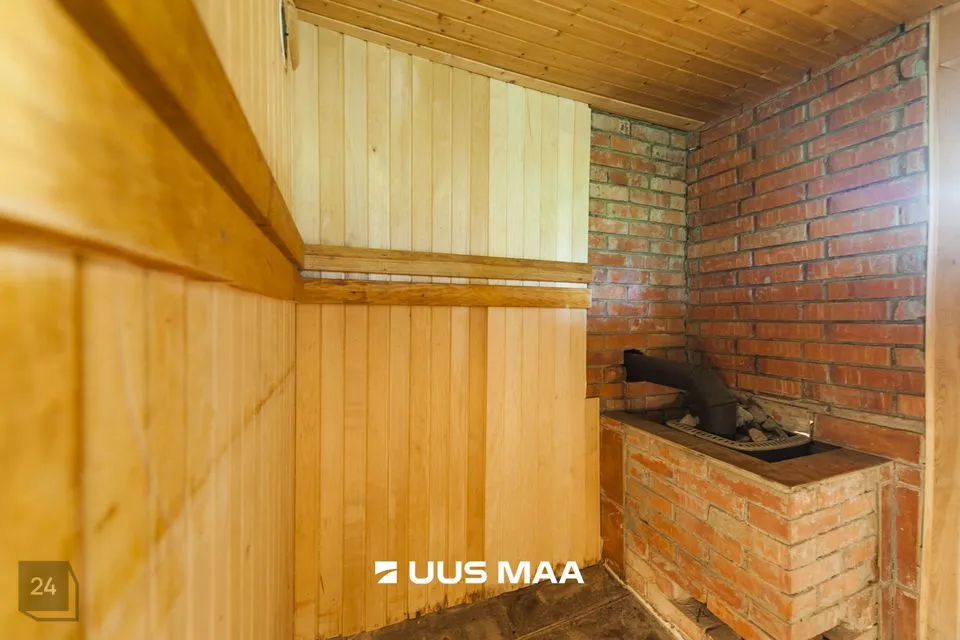 Maja esimesele korrusele saabujat tervitab suur elutuba 19 m², kust pääseb köök-söögituppa. Erilist atmosfääri majale annab imeline soemüüriga kamin-ahi, mis asub elutoas, kus saab pikkadel suveõhtutel teed juues päikeseloojangut nautida. Esimesel korrusel asuvad ka puukütte kerisega leiliruum, sauna eesruum, dušš, tualetituba, abiruum, garaaž ning külaliste magamistuba. Köögis on paigaldatud ka soemüüriga pliit, mida köetakse puudega.